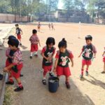 To make the learning joyful, playful, and meaningful for the little ones, all students were first given bunny aprons to wear. Then, in the school hall, a prayer for the Bunny Tomato activity was conducted with the students.
