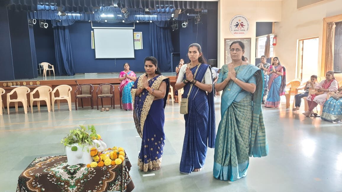बुधवार दिनांक: २४-९-२०२५ रोजी विद्यालयात महाराष्ट्र संस्कृती आणि नवरात्री परंपरेचे महत्त्व विद्यार्थ्यांमध्ये रुजवण्यासाठी भोंडला कार्यक्रमाचे आयोजन करण्यात आले होते. कार्यक्रमाची सुरुवात मुख्याध्यापिका निशा देवरे मॅडम यांच्या हस्ते हत्तीच्या मूर्तीच्या पूजनाने झाली. त्यांनी आपल्या प्रास्ताविकात भोंडल्याचे सांस्कृतिक आणि संस्कारात्मक महत्त्व स्पष्ट केले. कांडपिळे मॅडम यांनी सूत्रसंचालन करत भोंडल्याचा इतिहास व गाण्यांची माहिती दिली. त्यानंतर मागील शालेय स्पर्धांमधील विजेत्या विद्यार्थ्यांचे बक्षीस वितरण पार पडले. कार्यक्रमाचा मुख्य आकर्षण ठरला तो भोंडला खेळ, ज्यात सर्व विद्यार्थी-विद्यार्थिनींनी हत्तीच्या मूर्तीभोवती पारंपरिक गाण्यांवर आनंदाने फेर धरत नृत्य केले. दुपारच्या सत्रात खास महिला पालक वर्गासाठी भोंडला आयोजित करण्यात आला, ज्यात विजया कुलकर्णी मॅडम यांनी “माझे आरोग्य माझ्या हाती” या विषयावर समुपदेशन केले. यानंतर महिला पालकांनी उत्साहाने भोंडल्याच्या गाण्यांवर गायन व नृत्य करत सांस्कृतिक वातावरणाचा अनुभव घेतला. मुख्याध्यापिका देवरे मॅडम यांनी सर्व शिक्षक, कर्मचारी, पालक व विद्यार्थिनींचे आभार मानून कार्यक्रमाची यशस्वी सांगता केली.