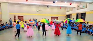 The celebration commenced with a vibrant assembly where the significance of rain and umbrellas were discussed. Students eagerly participated in a special dance drill, using umbrellas as props, choreographed to popular songs. The drill showcased the students’ coordination and creativity, as they performed synchronized movements, turning ordinary umbrellas into colorful, dynamic elements of their routine.